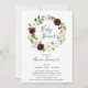 Elegant blommigt-babyduschinbjudningar har en krans av vattenfärgade blommor i rosa, burgundsmarsala och elfenben med lush grönt botaniskt löv och löv, där "babydusch" omges av chic handskriven skrift. Anpassa med din babyduschinformation under. Designad för att matcha vår Romantik-händelsematerisamling.