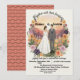 Fira din vackra resa med denna utsökta akvarellbröllopsinbjudan, med en romantisk illustration av en brud och brudgum som håller varandra i handen. Mot en lugn solnedgångsbakgrund i en frodig trädgård, är denna design omgiven av en livfull blomsterkrans i nyanser av persika, lila och grönt. Den mjuka, konstnärliga akvarellstilen frammanar en känsla av tidlös elegans och naturlig skönhet, perfekt för par som planerar ett trädgårdsbröllop, en utomhusceremoni eller en verkligt romantisk fest. Anpassa alla detaljer för din speciella dag, inklusive namn, datum, tid, plats och RSVP-information, för att skapa en unik och minnesvärd inbjudan som gästerna kommer att minnas