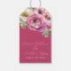 Romantisk akvarell rosa ranunkel på rosenskär bakg presentetikett