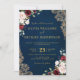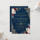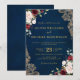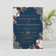 Romantisk akvarell vinröd marinblå guldblommig inbjudningar