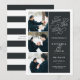 Vårt foto med Romantic Request sparar enkelt och elegant datumkortets tre av dina favoritfoton på förlovningen som är placerade längs den lämnat sidan, med dina bröllop-detaljer på högerna i vitt på bläckstråle. "Spara datumet" visas i vit skripttypografi med ett chicens hjärta inarbetat i designen. Lägg till information om bröllop, inklusive namn, datum och plats för bröllop. Kort som går tillbaka till det moderna vågrät rand i kol och vitt, med ytterligare fält för din bröllop webbplats eller ytterligare information...