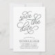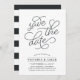 Bröllop spara datum-kortet för Romantisk begäran är enkelt och elegant och har "spara datumet" i djupfärgad träkol av svart skripttypografi där chicens hjärta arbetar in i designen. Lägg till information om bröllop, inklusive namn, bröllop, datum, plats och webbplats under. Kort som går tillbaka till det moderna vågrät rand när det gäller att matcha penselns svarta och vita.