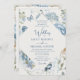 Romantisk blå Blommigt alla i en QR-kod Bröllop Inbjudningar