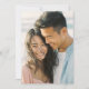 Denna bröllopsinbjudan har en varm och intimt fotografi av två individer i en glädjefylld omfamning, som fångar kärlekens och anknytningens väsen. Designen använder en mjuk färgpalett med naturliga toner, inklusive dämpade rosa och blå nyanser, som skapar en lugn och romantisk atmosfär. Layouten är enkel men elegant och fokuserar helt på det ömma ögonblicket som delas mellan subjekten, vilket gör den perfekt för par som vill förmedla uppriktiga känslor. Den realistiska representationsstilen förstärker scenens äkthet och inbjuder gästerna att dela i stundens glädje.