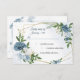 Underbart botaniskt anpassade OSA kort vackra blå skuggor och vita blommor med grönt löv på ett guld-geometriskt ram