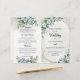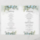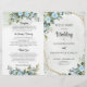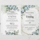 Romantic Blåa blommor och eucalyptus och guld bröllop-ceremonin, folded , Grey Bröllopsdag plan, Bröllop Ceremony-programmet, A verkligen boho design som har fångat upp hela firande och evenemang under de senaste åren, nämligen en lavish bouquet - en blandning av eucalyptus-andedräkt av fantastisk, elegant blandad vattenfärgad dustig blå grönt och vävd i faux ro geometriskt guld. Du kan vara säker på att du med den här designen för din kontorsutrustning för evenemanget kommer att vara toppmodern och extremt otrevlig, och din händelse kommer att bli ihågkommen under lång tid. Utformningen är vattenfärgad, handmålad färsk grönt eucalyptus löv med blandade blommor av dammiga blåa ro och delikat vävt runt - så modern terarium på sistone. Hela den lavinartade buketten av färsk eukalyptus löv och blå ro blommor omger på ett elegant sätt påskrifterna i mitten, som om kärlek hug var ömtålig. I denna vackra utformning av trendiget har vi förberett allt det inslag som behövs för er boho-händelse Party - som inbjudningar till bröllop, Inbjudningskort för möhippa, förlovning, elopement, årsdag, spel, välkomstposter, bord-tecken och mycket annat, så att ni kan få en komplett uppsättning av denna enastående boho-design med en vattenfärgad eukalyptus gieneri blandade dammiga blåa blommor-peonier.