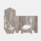Rustic tack för en bröllopsaffär med en vintage vibe, land stil romantisk blomma på grått vävade träplankar.