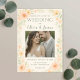 Fira din speciella dag med den här eleganten och romantiska blommigten med mjuk persikofärgad ro och vattenfärgad grön teknik. Perfekt för par som har kärlek klassiskt charm med en modern vrid, den här designen är ett vackert ramar av ditt favoritfoto och innehåller anpassade för datum, tid och plats. Ett tidslöst val för bröllop under vilken säsong som helst.