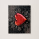 Romantiskt rött hjärta på blommigtens svarta bakgrund, på Alla hjärtans dag eller någon speciell anledning till kärlek.