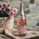 Romantisk Blommigt mjuk Rosa Grönt persika Classic Vinflaska Etikett
