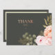 Ett vackert, vintage, romantiskt tack med en djup oliv grönt bakgrund, rosa-korallblommor och löv. Perfekt som möhippa tack, bröllop tack, födelsedagar och mycket annat.<a href="https://www.freepik.com/free-photos-vectors/brochure">Broschyr-vektor skapat av BiZkettE1 - www.freepik.com</a>). <br/>() Kortet är enkelt att anpassa med text, teckensnitt, teckensnitt, färg, pappra formalternativ och val av sex pappra typer.<br/>() Inte exakt vad du är tittar för? Alla våra produkter kan vara designad anpassningsbar för att uppfylla dina behov utan kostnad för extra.<br/>() Kontakta oss helt enkelt på askcottonlamb@gmail.com.<br/>() Samordnande tillgängliga produkter: Romantic Blommigt Inbjudningskort för möhippan<br/>Vill du ha något mer? Fråga oss bara!"