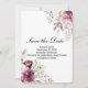 Eleganta och romantiska "Romantic Bloom Floral Peony Save the Date"-kort har en ljus bakgrund dekorerad med akvarellblommor i djup plommon, rosafärgad och elfenben. Denna anpassningsbara mall är perfekt för bröllop, förlovningar, möhippor och speciella tillfällen. Anpassa texten för att matcha ditt unika evenemang, vare sig det är en modern svart-tie-affär eller en vintageinspirerad fest. Det raffinerade blomsterarrangemanget skapar en tidlös estetik, perfekt för par som söker en mix av sofistikation och romantik. Perfekt för handfastningar!