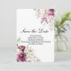 Eleganta och romantiska "Romantic Bloom Floral Peony Save the Date"-kort har en ljus bakgrund prydd med akvarellblommor i djup plommon, rosafärgat och elfenben. Denna anpassningsbara mall är perfekt för bröllop, förlovningar, möhippor och speciella tillfällen. Anpassa texten för att matcha ditt unika evenemang, vare sig det är en modern svart-tie-fest eller en vintageinspirerad fest. Det raffinerade blomsterarrangemanget skapar en tidlös estetik, idealisk för par som söker en mix av sofistikation och romantik. Perfekt för handfastningar!