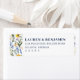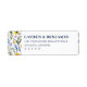 Dessa returadressetiketter har en charmig akvarell blomsterdesign med livfulla gula, blå, lila och gröna nyanser. Layouten är elegant balanserad och inramar den centrala texten med vertikala ramar av prästkragar, forget-me-nots och diverse blommor. Med en romantisk och inbjudande estetik är dessa etiketter perfekta för formella tillfällen som bröllop eller årsdagar och lägger till en touch av naturinspirerad skönhet på dina kuvert.