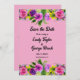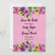 Denna inbjudan till bröllop spara datum i elegant är perfekt för en modern sommartid i blommigt bröllop. Den romantiska designen har färgstarka vattenfärgblommor med elegant svart typografi på rosa.