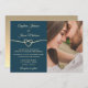 Elegant, sofistikerat guld-folie av rep i kombination med marin blå bakgrund och anpassningsbar av paret. En bra, enkel, minimalistisk bröllopsinbjudan.