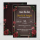inbjudningsdesign med en elegant rosbukett. grundfärg svart. gammal stil