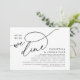Meddela och er lyckliga allt efter i stil med vårt moderna vackra svarta och vita tema (när vi har ätit middag)... bröllop-inbjudan till firande. Det är idealiskt för par som har beslutat att fira sin bästa dag. Med sin sofistikerade men lekfulla utformning kommer inbjudan säkert att ange tonen för en händelse som inte kan glömmas bort. Inbjudningskortet har ett modernt och minimalistiskt tema för skriptutformning, vilket gör att du får lite elegans i firande. Designad av TeeshaDerrick