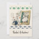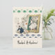 Romantiskt par skrev ut bröllopsinbjudan för teckningar i grönt och blå antika stil. Du kan anpassa texten!
