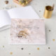 Guld bröllop ringar på en vintage brudar klänning, modern gäst i bröllop bok. En del av en matchande koordinerad uppsättning bröllopsdagar som är nödvändiga för din speciella dag och som är tillgänglig från PERSONLIG_BRÖLLOP STORE.