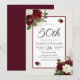 Romantisk Burgunderröd Blommig 50-årsdag Inbjudningar