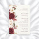 Tillkännage din speciella dag med denna eleganta burgunderfärgade blommiga bröllopsinbjudan. Med en fantastisk kaskad av djupröda rosor och krämvita blommor frammanar denna design en känsla av tidlös romantik och sofistikering. Den rika färgpaletten och det känsliga blommiga arrangemanget skapar en fängslande visuell effekt som sätter tonen för ditt bröllop. Denna inbjudan är perfekt för par som söker en klassisk men dramatisk estetik för sin fest. Låt denna utsökta design vara den första glimten dina gäster får in i din vackra union.
