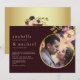 Fira din kärlek med denna romantiska burgundiska bröllopsinbjudan med eleganta guldfärgade accenter, en livfullt blommig hörndesign och ett anpassat foto. Den rika, stämningsfulla färgpaletten och moderna serif-typsnitten gör den idealisk för sommar- och höstbröllop. Perfekt för par som söker en lyxig men hjärtlig inbjudan som blandar tidlös charm med en personlig touch.