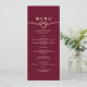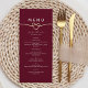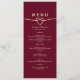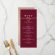 Lägg till en touch av elegans till din mottagning med vår chic romantiska röda burgundy bröllopsmeny. Med modern kalligrafi och prydd med ett romantiskt guldkardellhjärta är det den perfekta kombinationen av enkelhet och sofistikation för att komplettera din middagsupplevelse.