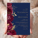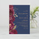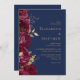 Romantisk burgundy Navy Blue Guld Blommigt Bröllop Inbjudningar