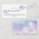 Romantisk och drömsk bröllopsdusch infogning kort med akvarell illustration av rosa, lila och blå himmel med stjärnor och moln. Kortet ber gästerna att fylla i receptkortet och ta med det till duschen. Skicka detta kort tillsammans med det matchande receptkortet i min butik!