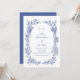 Sätt tonen för din romantiska fest med denna fantastiska dammiga blå bröllopsinbjudan, med ömtåliga handritade blå vilda blommor och botanisk lövverk arrangerade i en frodig, organisk kransram. Koordinera med matchande svarsbrev, detaljerade kort och tackkort för att skapa en sammanhängande brölloppsbrevpappersvit som gör ett bestående intryck på dina gäster. Perfekt för par som söker en blandning av rustik elegans och vintage-romantik med en modern, anpassningsbar twist.