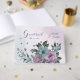 romantisk dammig lila och blåa blommor bröllop gästböcker