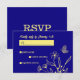 Unikt enkelt bröllop-svarskort med romantiska blommor och blommor av elegant guld på royalets blå bakgrund FÖR MER MATCHING PRODUCTS klickar på samlingen ovan eller kontaktar mig.