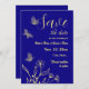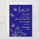 Unik enkel bröllop spara datum med romantiska blommor och fjärilar från guld och elegant på royalets blå bakgrund FÖR MORE MATCHING PRODUCTS klickar på samlingen ovan eller kontaktar mig.
