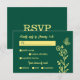 Unikt enkelt bröllop-svarskort med romantiska blommor och blommor av elegant guld på gröntens bakgrundsmaterial för MORE MATCHING PRODUCTS klickar på samlingen ovan eller kontaktar mig.