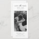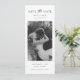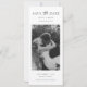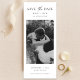 Dela din kärlekshistoria med detta bokmärke save the date-kort. Den enkla designen sätter ditt favorit svartvita foto i centrum. Ren text och mjuk skrift ger det en modern och varm känsla. Det är ett enkelt sätt att låta alla veta om er bröllopsdag.