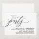 Markera början på din för evigt med elegans med vår romantiska samtida svart och vit tema bröllopsflykt lyckliga för alltid efter lunch, brunch, mottagning middag fest firande inbjudan kort, "Lycklig för alltid fest". Perfekt för par som förlänger sin glada tillställning, denna inbjudan utstrålar sofistikering med en antydan av lekfullhet och sätter scenen för ett minnesvärt evenemang. Prydd med ett tidlöst modernt manus design tema, det ger en touch av raffinerad charm till din fest. Skapat av TeeshaDerrick, denna inbjudan lovar att vackert fånga din kärlekshistoria.
