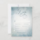 Lägg märke till vintern under bröllop med lite etheral elegans. Vårt tilltalande svarskort från bröllop med middagsval har en mjuk, drömmande bakgrund som påminner om en vinter-ljus himlar. Dusty blue hues blandas sömlöst med delikata vita accenter och skapar en arbetsyta för mjukt fallande snöflingor. En häftig vit ovala vilar på det här serenlandskapet, som gör dina bröllop-detaljer till ett romantiskt omfång. Texten, en vacker kombination av flytande manus och vintage serif typsnitt i en djup, dammig blått, är tydlig med elegant. En enkel gnistra övertäcker ge effekten av att lyssna på snö. Den här fantastiska sviten fångar skönheten i ett vintersnöfall och sätter perfekt in scenen för din kärlek-historia i blommar mitt i säsongens magi. Skapat av Farmhouse Press.