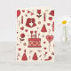 Detta doodle-mönster har en mängd handritade element i en varm palett av röda och mjuka rosa nyanser, inklusive: