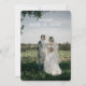 Meddela din vackra bröllopsresa med vår Romantiska Florence, Italien Spara datum Foto Kort! Denna eleganta design har ett fantastiskt foto av det lyckliga paret, Lillian och Aaron, insvepta i en genomskinlig slöja mot en pittoresk italiensk landskapsbild, vilket skapar en intim och drömlik atmosfär. Den frodiga grönskan och den natursköna bakgrunden antyder den oförglömliga upplevelse som väntar era gäster i Florens.
