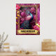 Romantisk Fuchsia Påfågel och Rosor Fantasi Poster