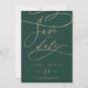 Den här romantiska gröntens kalligrafi som sparar datumkortet är perfekt för ett enkelt bröllop. Den moderna klassiska designen har finare-snurrar och vitaktiga blomningar med elegant elegant-handskriven faux champagne guld-folie-typografi.