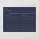 Romantisk guld kalligrafi marinblå bröllopsrecept vykort