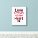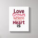 I den romantiska väggkonsten biet växer "Kärlek där ditt hjärta växer". Perfekt för rum, bröllopsgåvor eller daghem, den här tryckningen framkallar värme och naturskönhet.