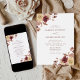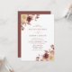 Elegantens bröllopsinbjudningar under hösten som innehåller dina bröllop-detaljer i mitten av designen med buketter av vattenfärgblommor och löv i nyanser av , burgundi, terracotta, blek gult, marsala och brun i hörnen. Den varma och moody färg-paletten gör dessa inbjudningar perfekt till ditt sena sommar- eller faller-bröllop.