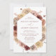 Elegantens bröllopsinbjudningar under hösten som innehåller uppgifter om bröllop omgivna av en geometrisk ram av vattenblommor och löv i nyanser av , burgundi, terracotta, marsala och brun. Den varma och moody färg-paletten gör dessa inbjudningar perfekt till ditt sena sommar- eller faller-bröllop.