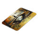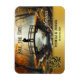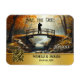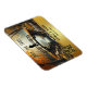 Romantisk Spara datum-magnet med en målning av ett par på en bro i en höstskog. En vacker symbol för en bro som går in i ett nytt liv tillsammans. En QR-kodmall är tillagd för din bekvämlighet och kan enkelt anpassas eller raderas om den inte behövs.