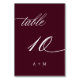 Romantisk kalligrafi Bröllop 10, Burgundy Bordsnummer