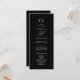 Det här romantiska bröllopsprogrammet för svartfärgad mörk är perfekt för ett enkelt bröllop. Den moderna klassiska designen har finare-snurrar och vitaktiga blomningar med en elegant elegant, handskriven typografi. Ta med par initialer, parets namn, bröllop-datum och -plats, tack, serviceordning, bröllopsfest och ett minnesmärke "i kärleksfullt minne" som tillval. Köp utskrivna program och/eller snabbhämtning som kan skrivas ut lokalt.