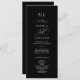 Det här romantiska bröllopsprogrammet för svartfärgad mörk är perfekt för ett enkelt bröllop. Den moderna klassiska designen har finare-snurrar och vitaktiga blomningar med en elegant elegant, handskriven typografi. Ta med par initialer, parets namn, bröllop-datum och -plats, tack, serviceordning, bröllopsfest och ett minnesmärke "i kärleksfullt minne" som tillval.